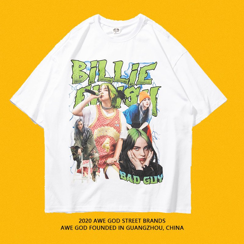 AWE GOD European and American hip-hop women's group printed short-sleeved T-shirt men's original trendy brand loose street couple tops ins