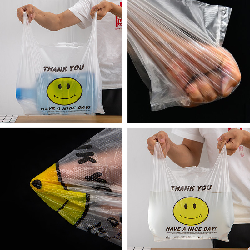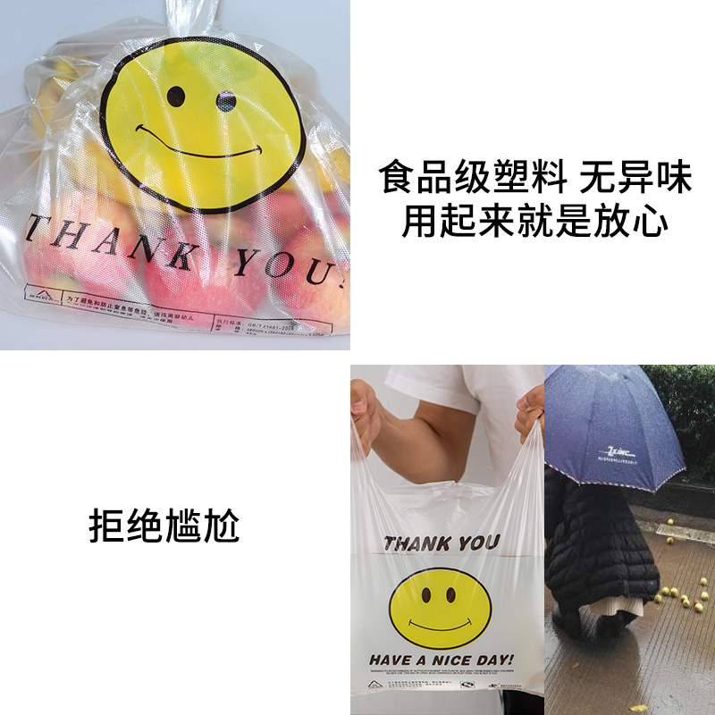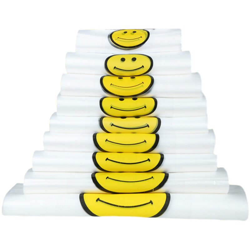 Smiley transparent plastic bag disposable food bag delivery packaging convenient shopping portable commercial vest bag customization