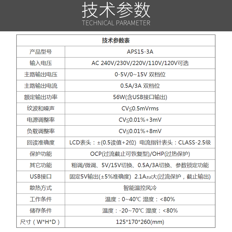 APS15-3A standard configuration 15V3A APS15-3A optional one APS22-5A standard configuration 22V5A APS22-5A optional one APS2