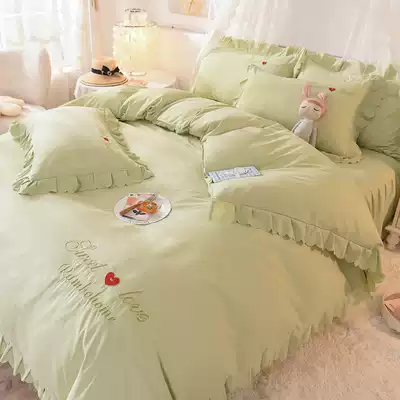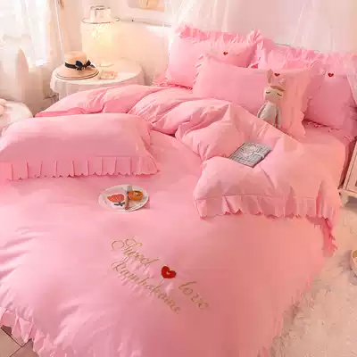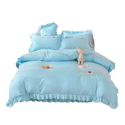 Picasso's new love embroidered bed skirt four-piece cotton pure cotton princess style lace quilt cover simple solid color