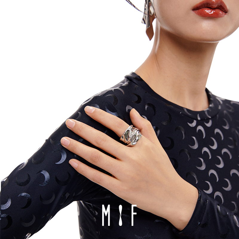 MIF Iso Day Rochi Series Folds Silk Ring Woman Crossvein Advanced Sense Fashion Design Light Extravagant Ring