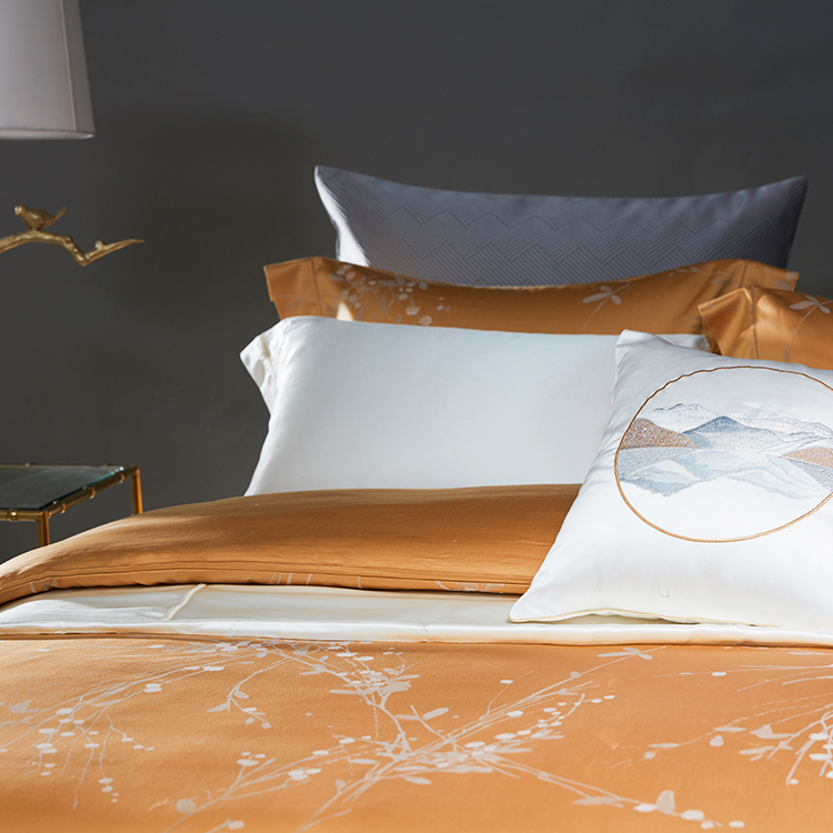 Mengjiexiu color gold long-staple cotton yarn-dyed jacquard four-piece set 13610 counters with the same cotton luxury jacquard quilt cover