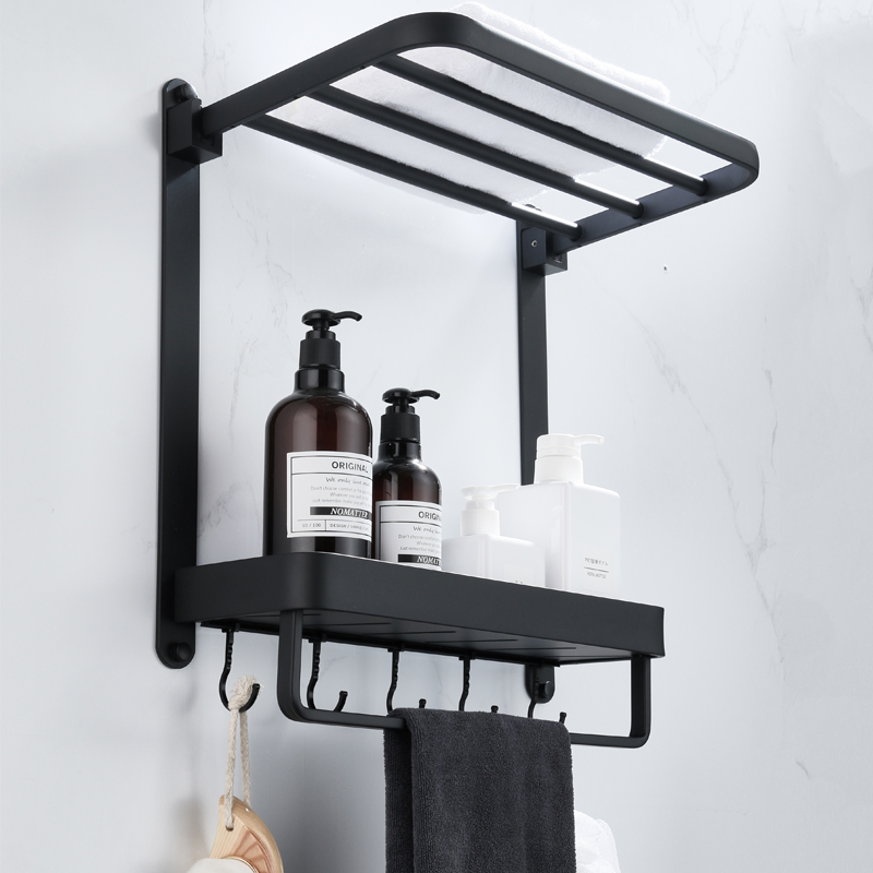 Space Aluminum Black Bathroom Shelf Wall-mounted Makeup Room Bath Towels Multilayer Toilet Hardware Bathroom Pendant