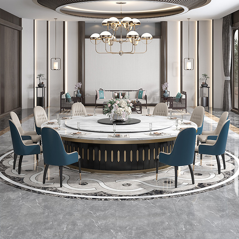 Hotel Electric Dining Table Large Round Table Hotel Bag Compartment 20 People Automatic Swivel Marble Hotpot Table Dining Table And Chairs Combination