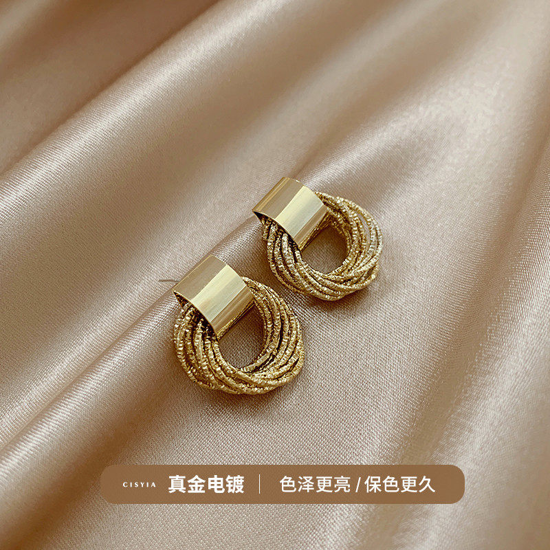 ins lukewarm ~ light and luxurious ~ advanced sensory ear needle female advanced European and American wind circle earrings 925 silver needle temperament tidal deposit