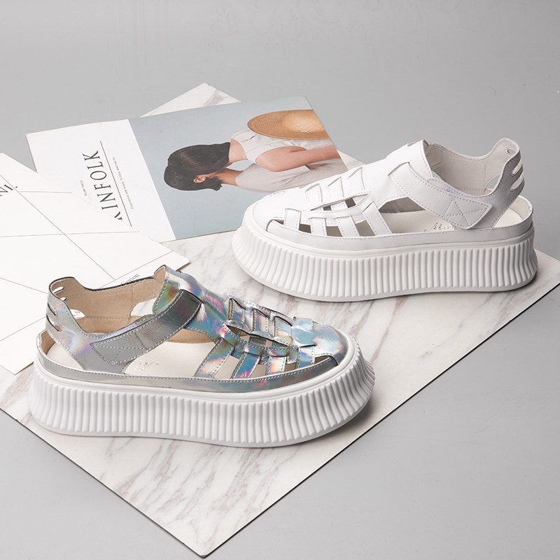 European station hollow white shoes 2022 spring and summer new leather thick-soled Roman sandals casual muffin sports women's shoes
