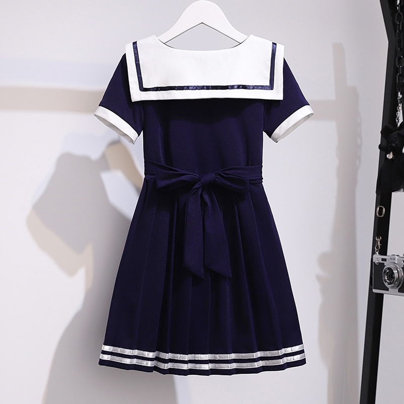Summer New Girl Jk Ocean Dress Net Red Short Sleeves Princess Dress Academy Wind Red Children Little Girl Thyme Dresses