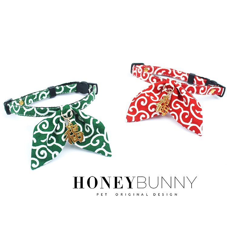 honeybunny tang grass pattern blessing character listed cat safety buckle collar bow rabbit ear bow tie