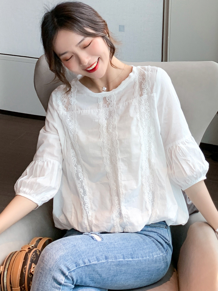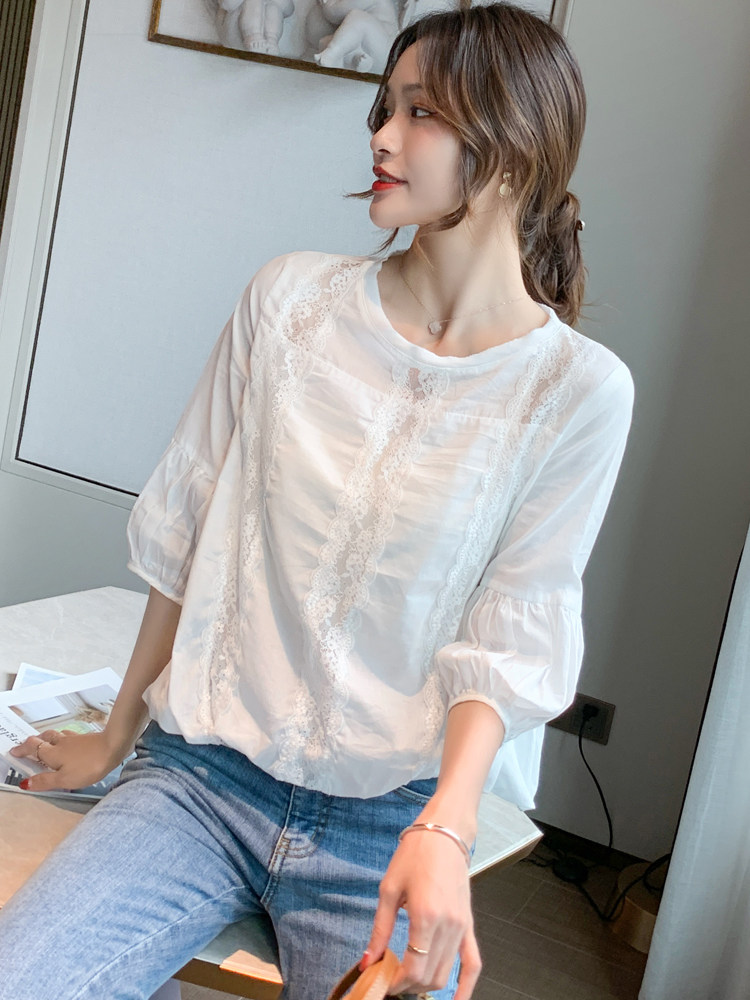 European Station Snowspinning Shirts Women's Summer Short Sleeves Slim 2022 New Fashion 100 Lace Blouses Ocean Wave
