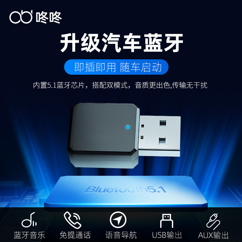 Dongdong USB Car Bluetooth Receiver 5 1 Mini AUX Dual Output Car U Disk Distortion-Free Audio Transmitter Hands-free
