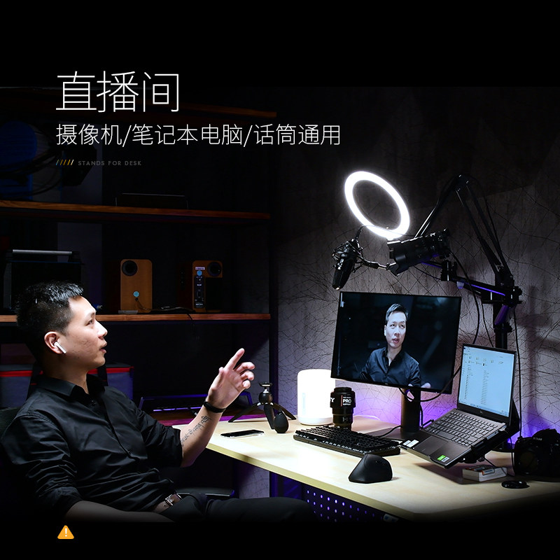 Mobile phone tablet live broadcast bracket notebook computer monitor iPad microphone fill light support bracket desktop floor
