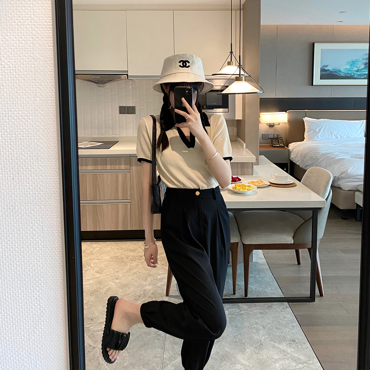 YH77 V-neck ice silk wool sweater women's summer thin section sunscreen small fragrance short-sleeved top pullover thin T-shirt