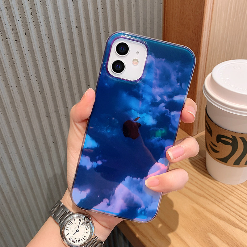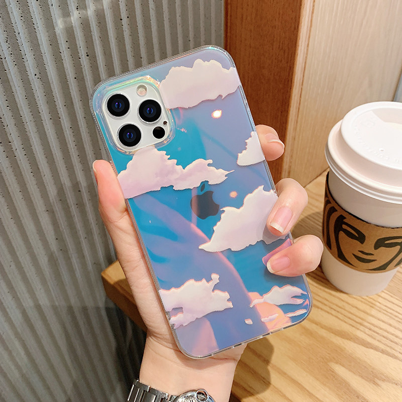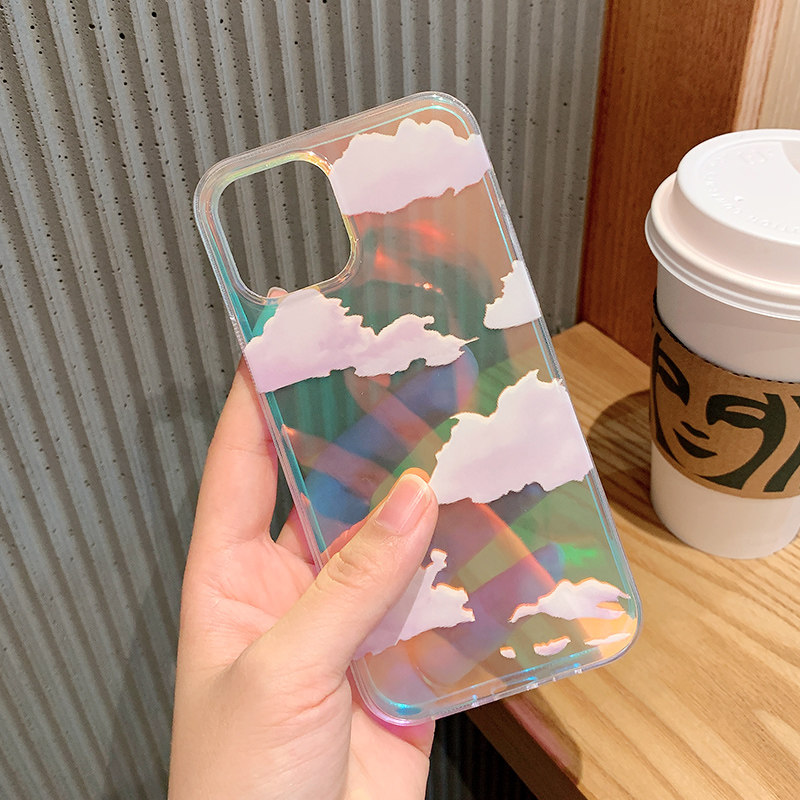 iphone 12 mobile phone case new transparent laser iphone 11 summer simple ins inspired fantasy cloud 11 12pro ultra thin all-inclusive shatterproof 12mini premium national trend