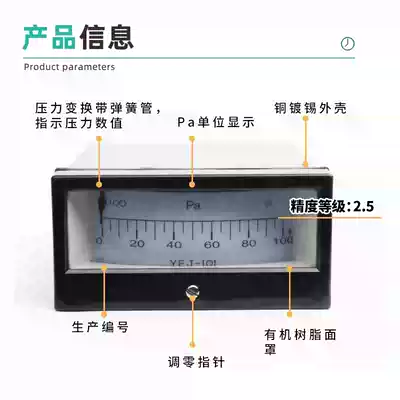 YEJ-101 rectangular diaphragm pressure gauge square pressure gauge rectangular wind pressure micro pressure gauge positive and negative pressure factory direct sales