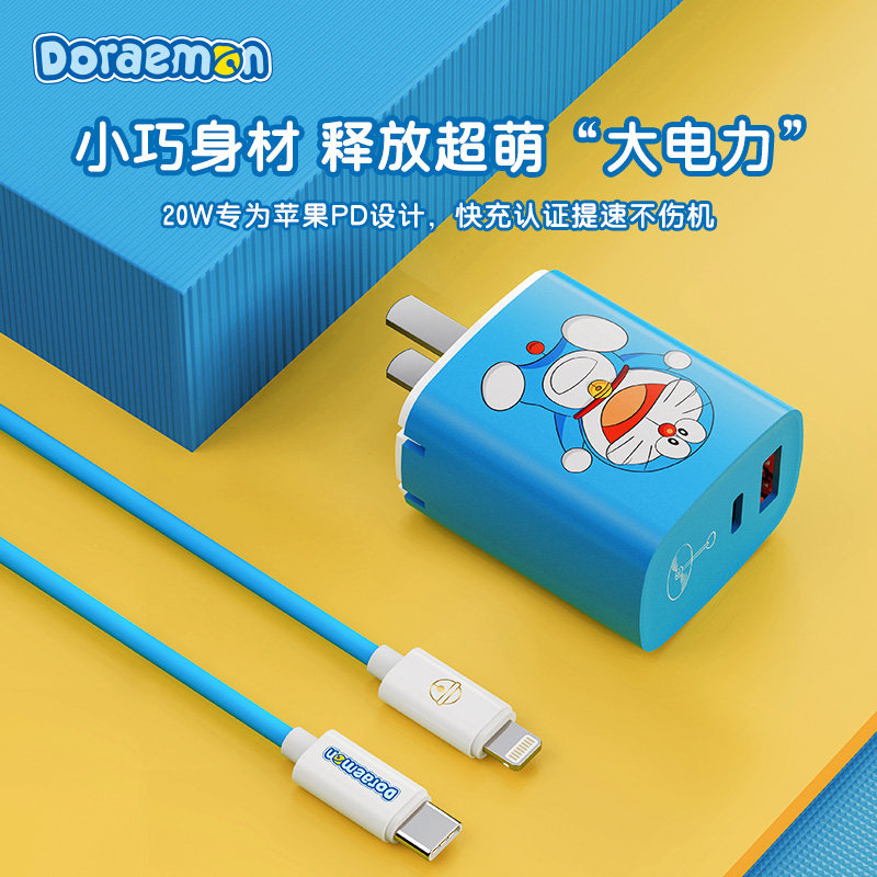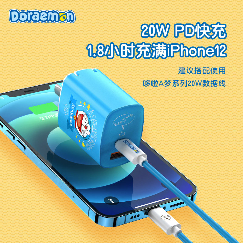 (Doraemon★ Genuine License) (Folding Charger) PD20W 18W Dual Fast Charging★ Support iPhone 8-12 Series (Apple Data Cable) PD20W Fast