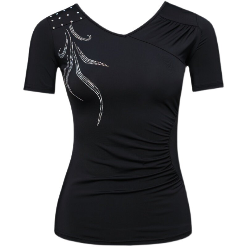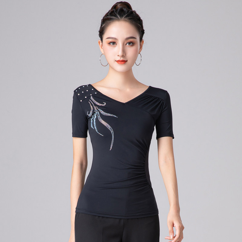 Latin dance top women's new fashionable hot diamond dance dance modern adult V-neck social dance practice national dress summer