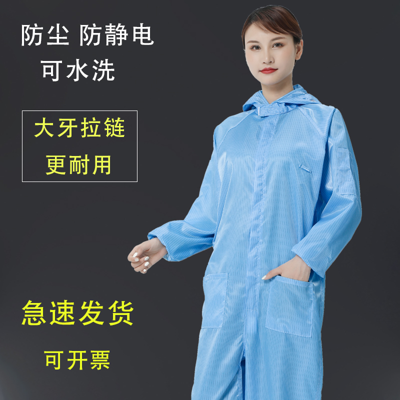 High quality dust-free suit with large tooth bracelet anti-dust suit male and female body static coat white blue breeding protective clothing