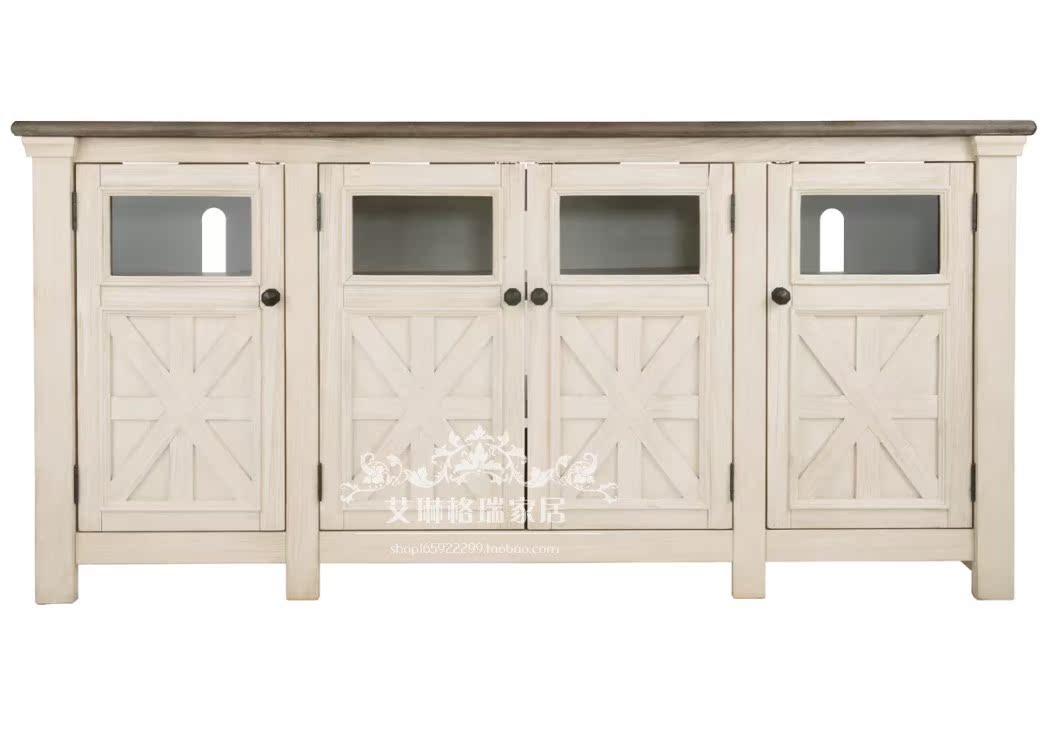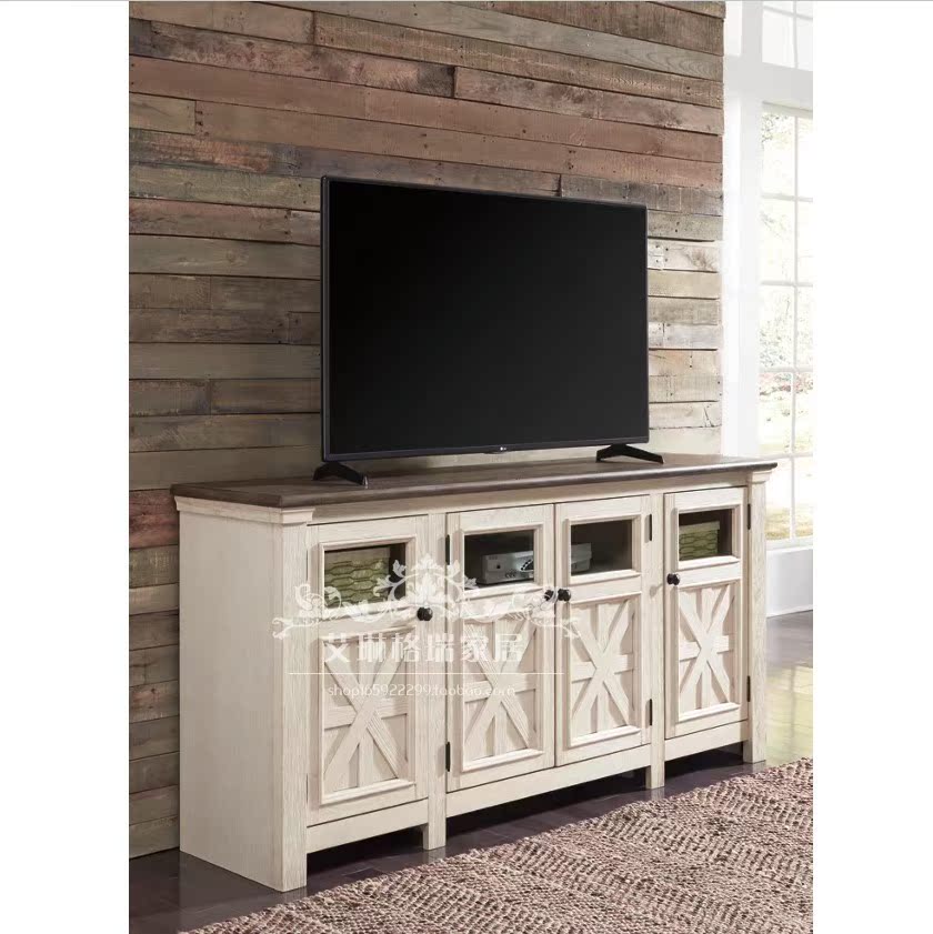 American Countryside Solid Wood TV Cabinet Tea Table Combo Meek Retro Made of Old Carved Flower Oak Containing Cabinet Ground Cabinet Innate