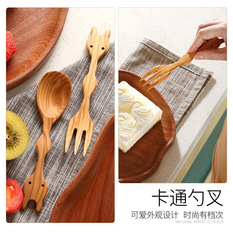 Oblique shovel Soup spoon (medium) Soup spoon (small) Cartoon fork Imported olive wood Whole wood excavation