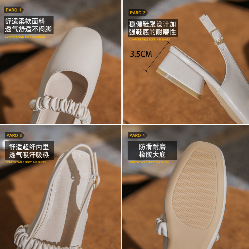 2021 summer new net red thick heels low heels square toe toe sandals female fairy style Mary Jane shoes single shoes women
