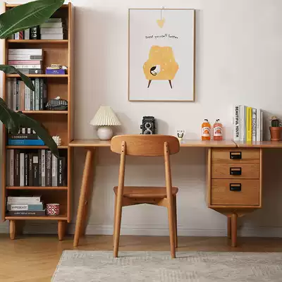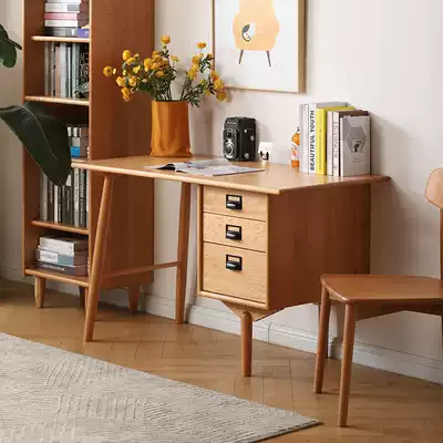 Nordic solid wood double desk student desk cherry wood learning table oak with drawer desk