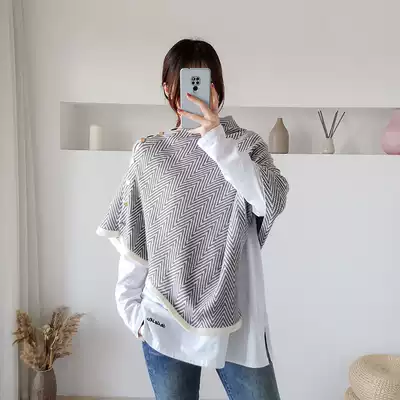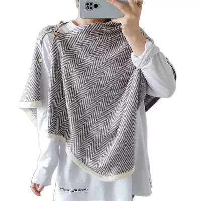 Spring and Autumn Stripe Office Air-conditioned Room Shawl Cloak Women's Outer Thick Knitted Scarf Dual-purpose Warm Cervical Verse