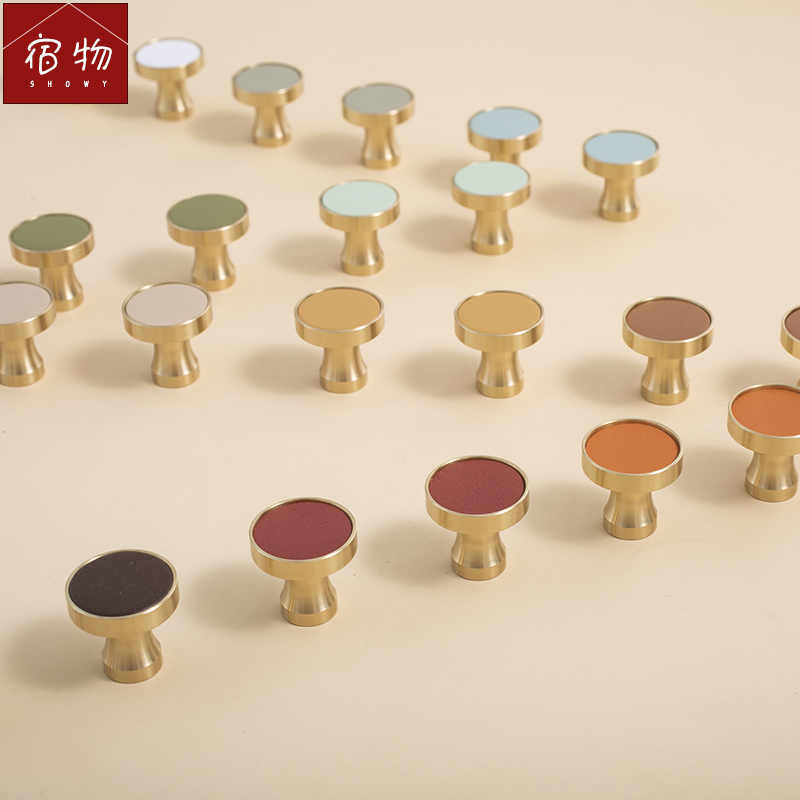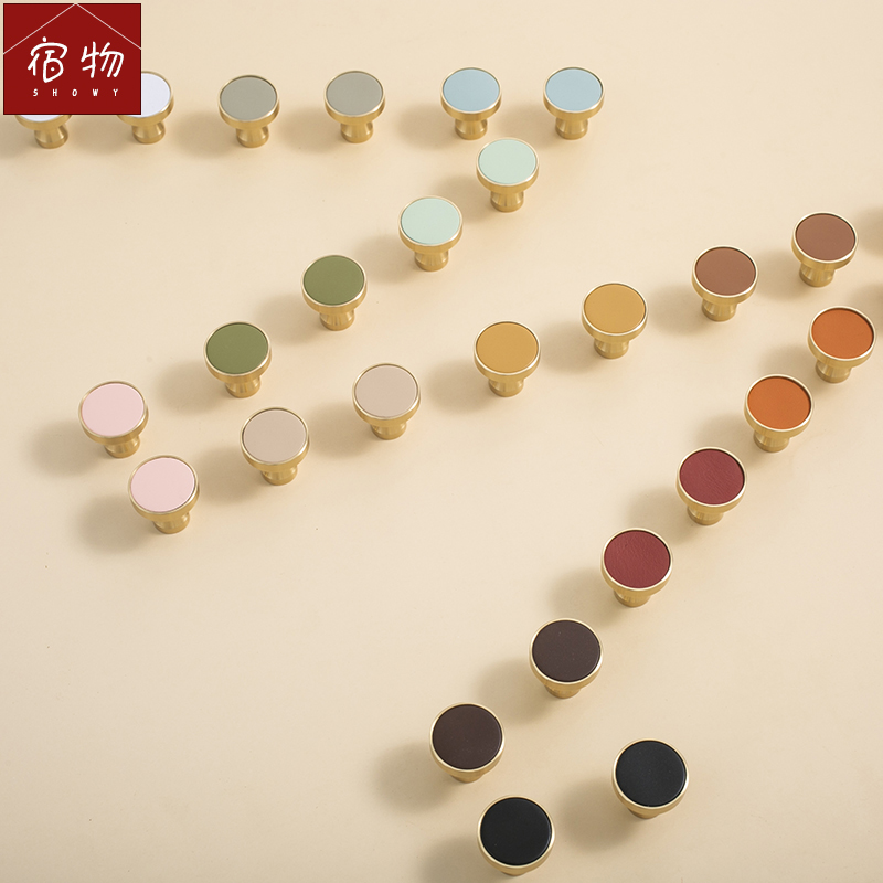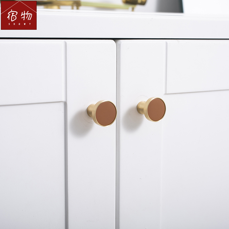 Children's House Bull Leather Brass Pull Handle Nordic Minimalist Color Wardrobe Door Drawer Light Lavish Overall Cabinet Pure Copper Round Handle