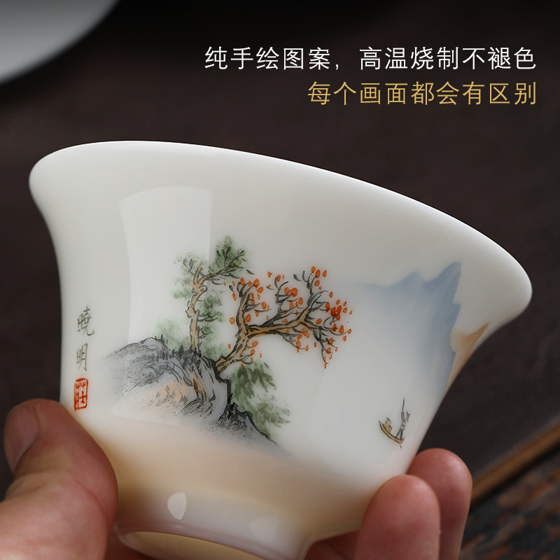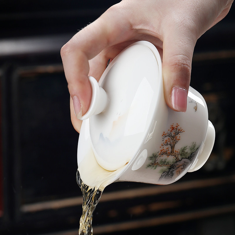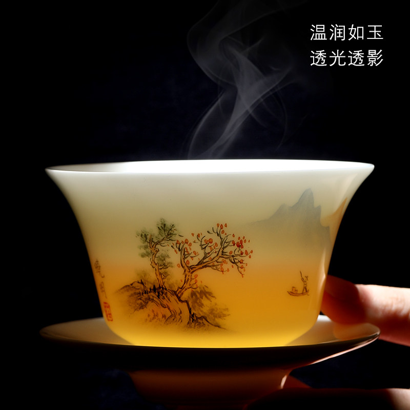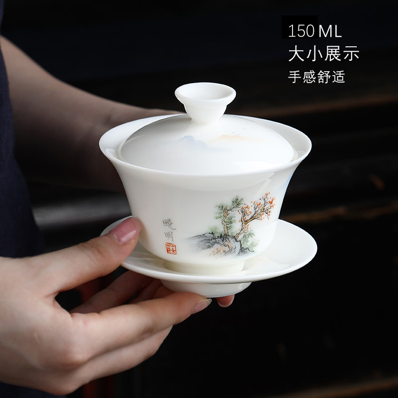 Inexplician Sky Balsamic Goat Fat Jade Porcelain Three cover Bowl Single Hand-painted Ceramic Kung Fu Bubble Bowl Large Tea Cup Tea Tea