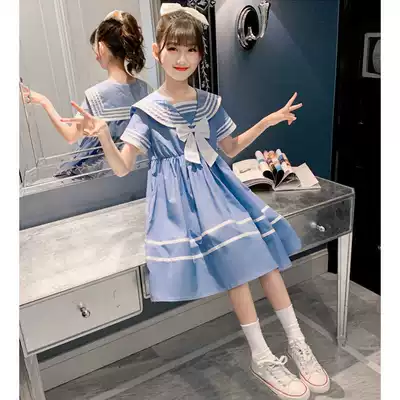 Girls dress 2021 summer new Korean version of foreign school uniform skirt Primary School students summer navy collar skirt
