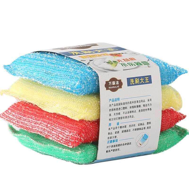 4 pieces of scouring pad dishcloth kitchen cleaning cloth sponge magic wipe double-sided brush bowl artifact steel wool pot cloth