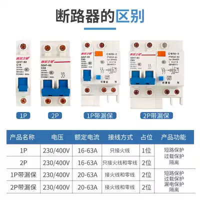 Air switch circuit breaker switch 1P2P circuit protector empty 40A63A household small DZ47 distribution box