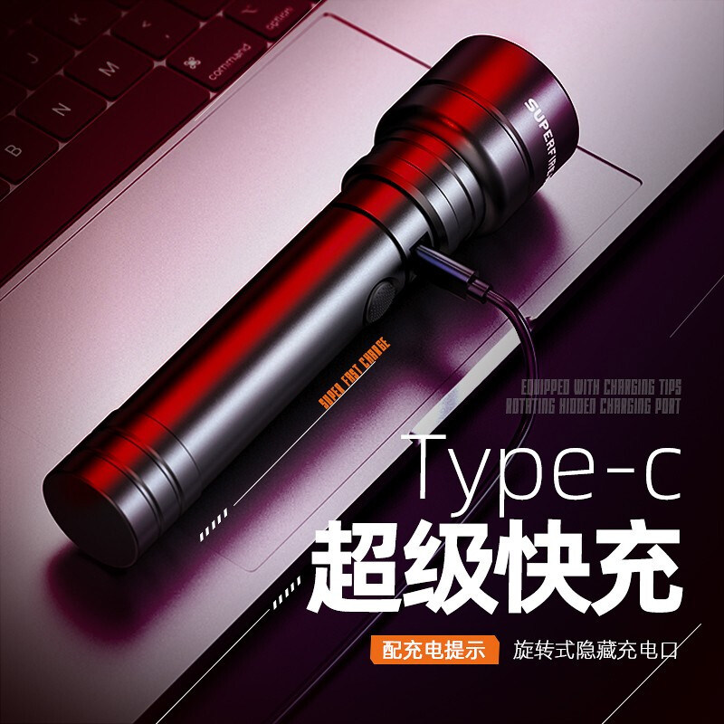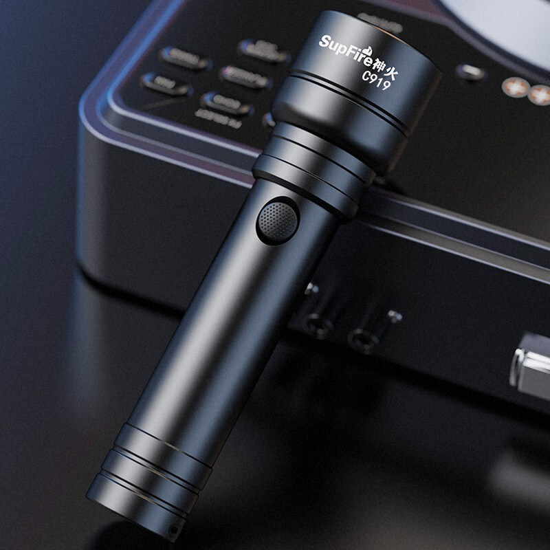 Shengjian C919 strong light flashlight USB charging outdoor concentration ultra - light radiation tactical shipyard lighting
