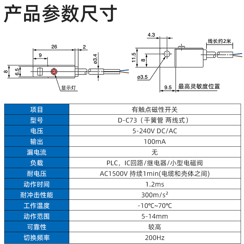 Magnetic switch D - C73 cylinder magnetic induction switch close to switch magnetic sensor dry tube open two wires