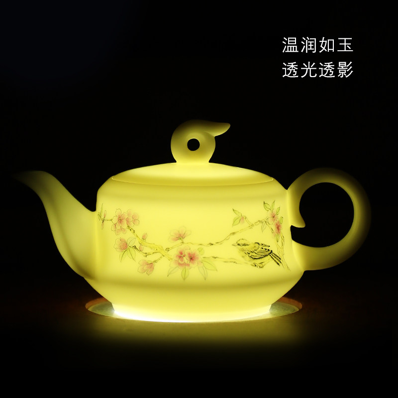 Wonderful Lian Tianxiang "Full Garden Spring Color" Ceramics Master Hand-painted Teapot Defied Goat Fat Jade Porcelain Kung Fu Bubble Teapot