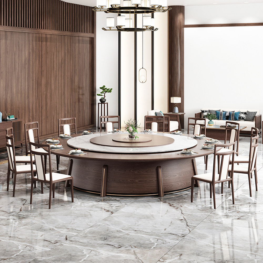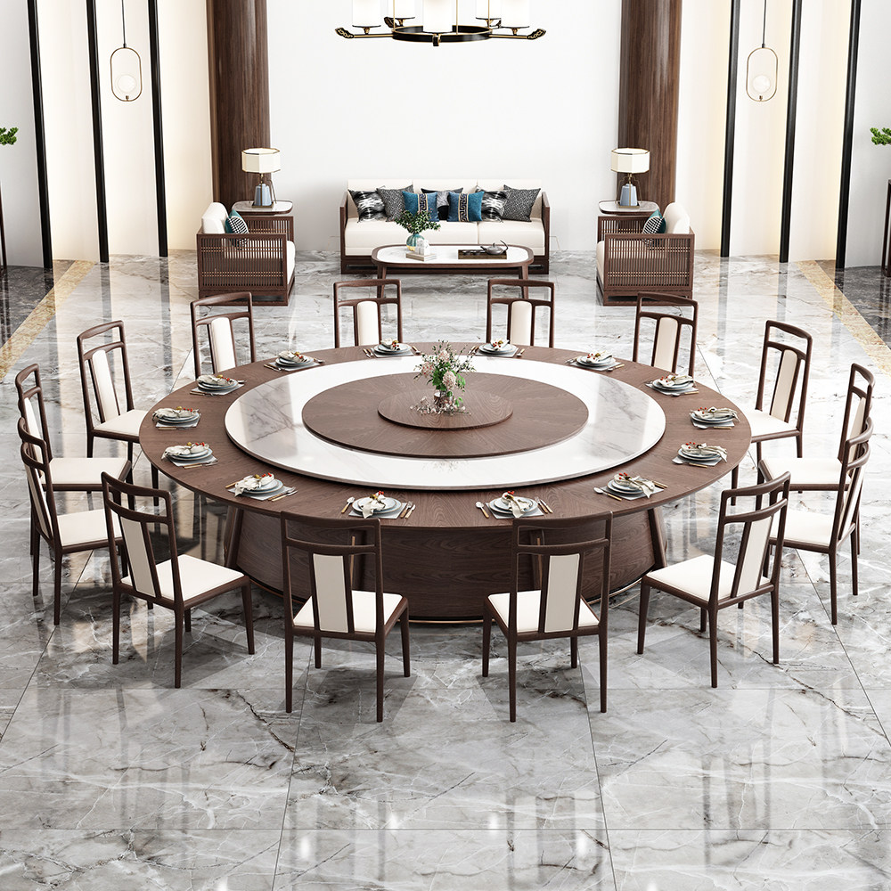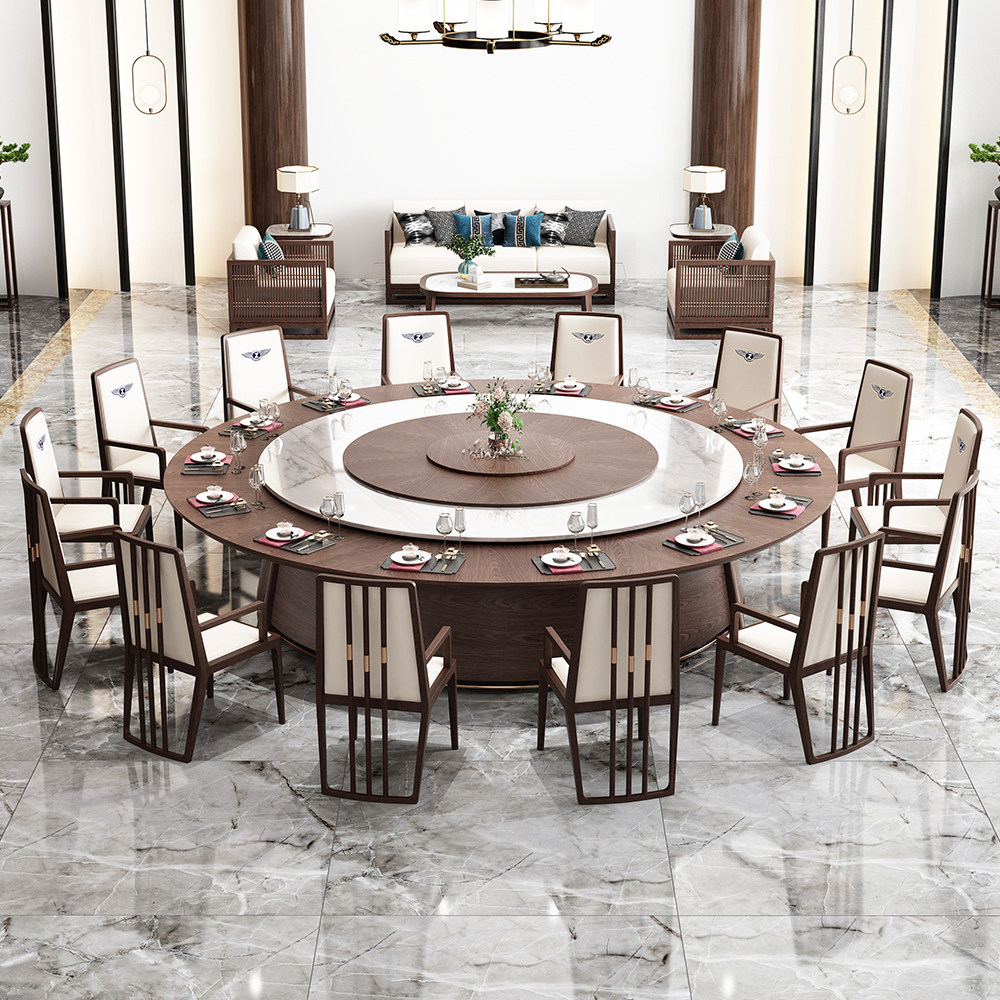Zhongguan new Chinese-style hotel electric large round table marble with turntable dining table 15 people 20 people restaurant box tables and chairs