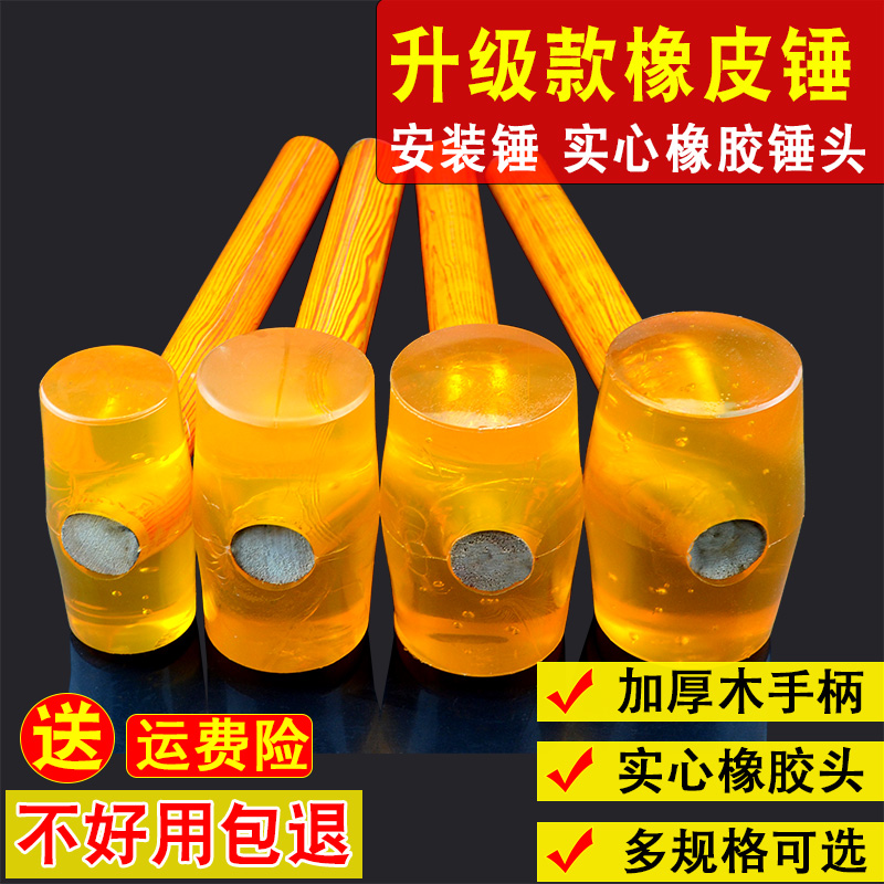 Transparent rubber hammer Rubber hammer Plastic hammer size wooden handle Champagne hammer Floor tile decoration installation hammer