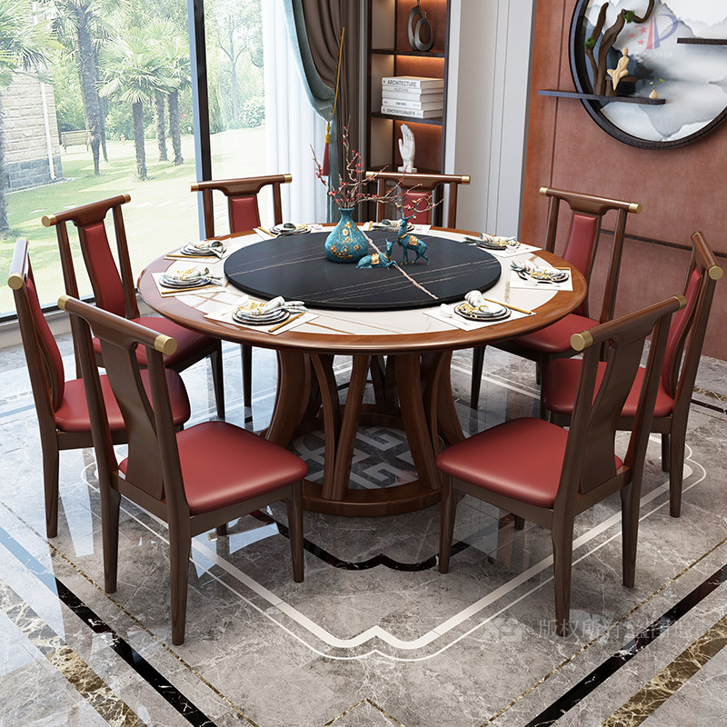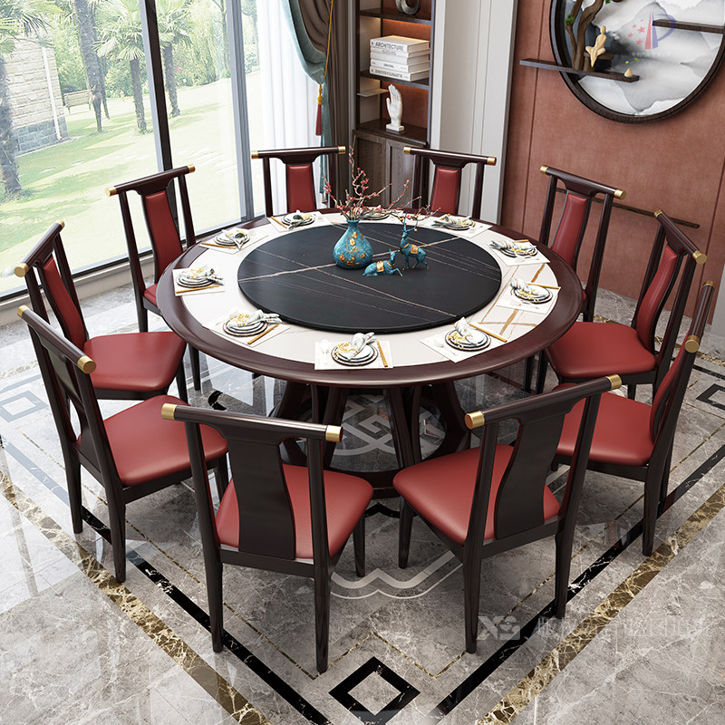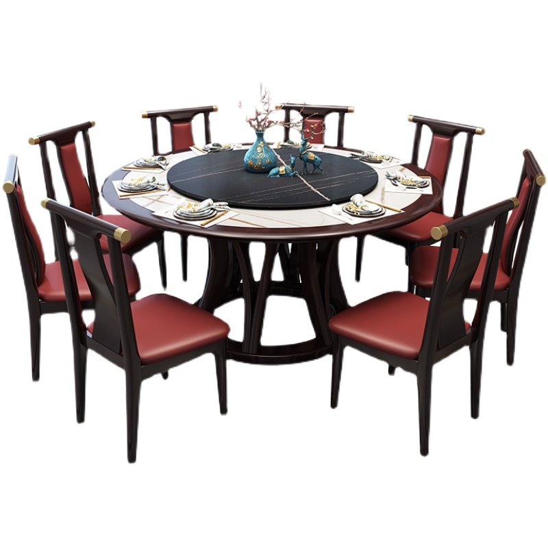 New Chinese style all solid wood round table dining table and chair combination Imported rock board Modern simple marble round dining room table