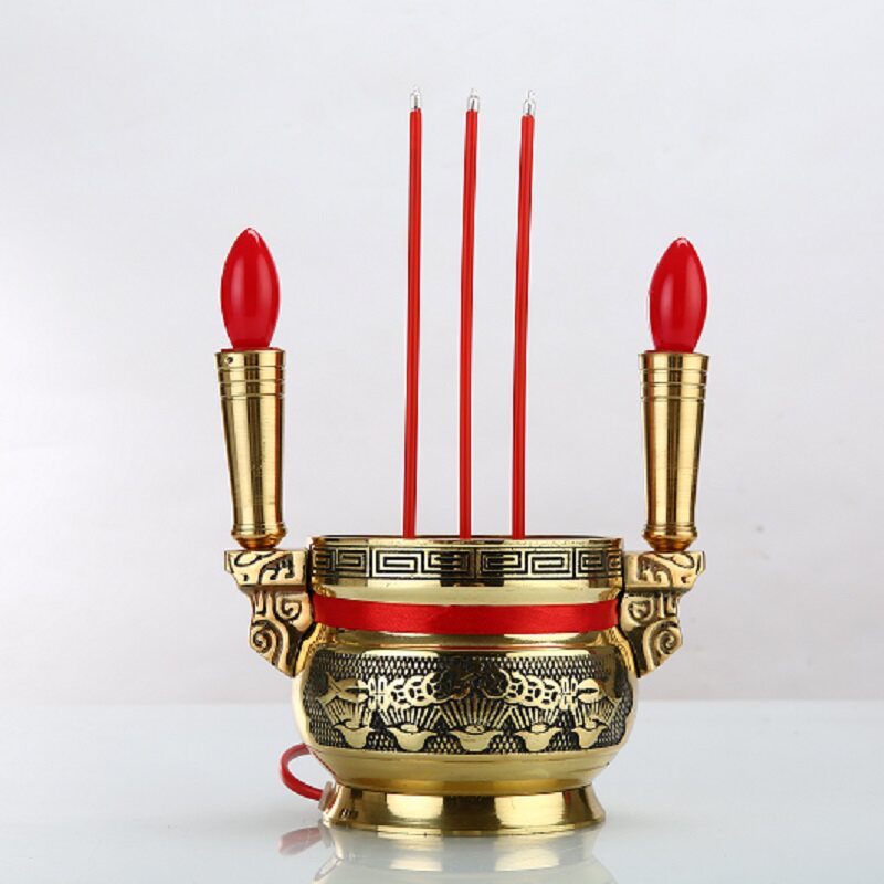 Pure copper electronic incense burner plug-in electric candle lamp electric incense burner for Buddha lamp Changming lamp electric candlestick Buddha front household supplies Buddha tools