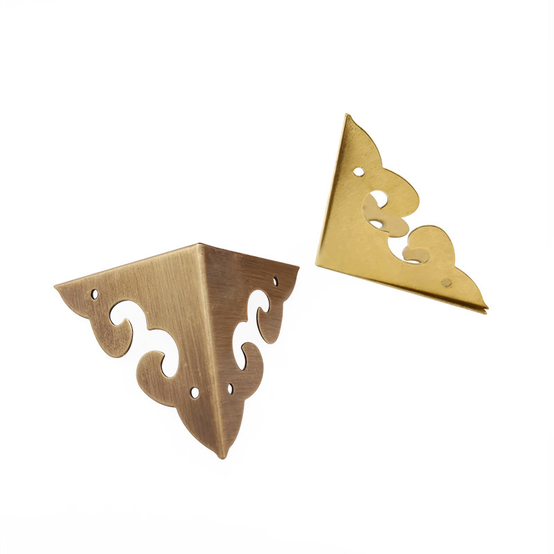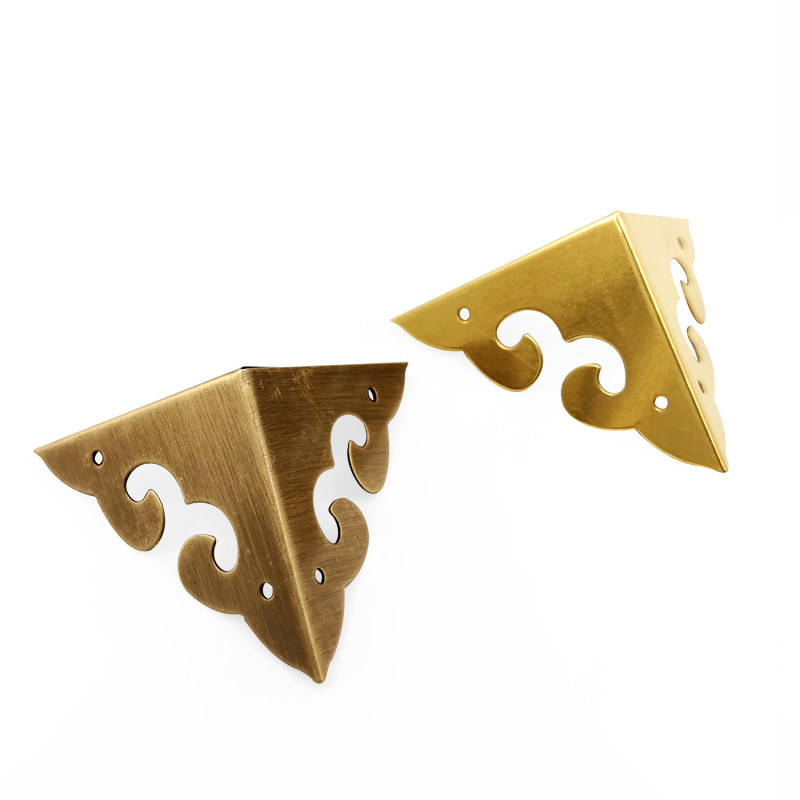 Chinese antique box corner copper corner flower Pure copper decorative corner wooden box Metal corner camphor wood box Three-sided corner