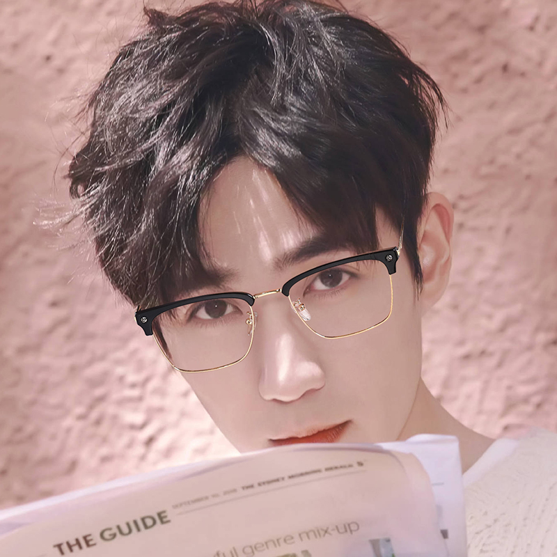 Anti-blue glasses men's and women's trend anti-radiation fatigue ruffian handsome eyebrow frame retro degree-free eye proximity mirror
