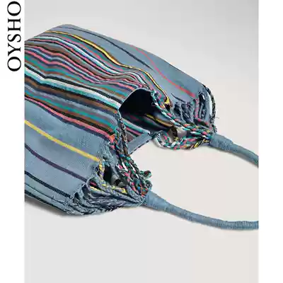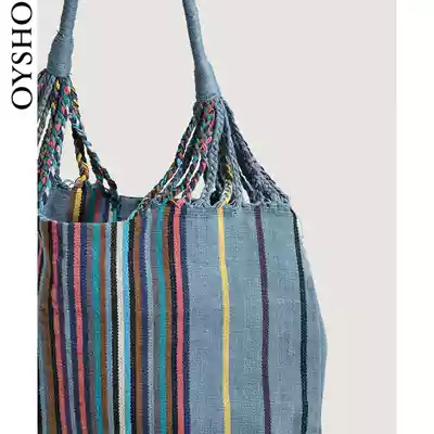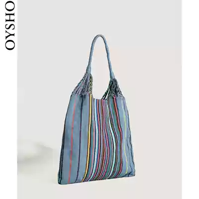 Oysho striped commute shopping fashion large capacity shoulder bag shopping bag Hand bag 14213880203