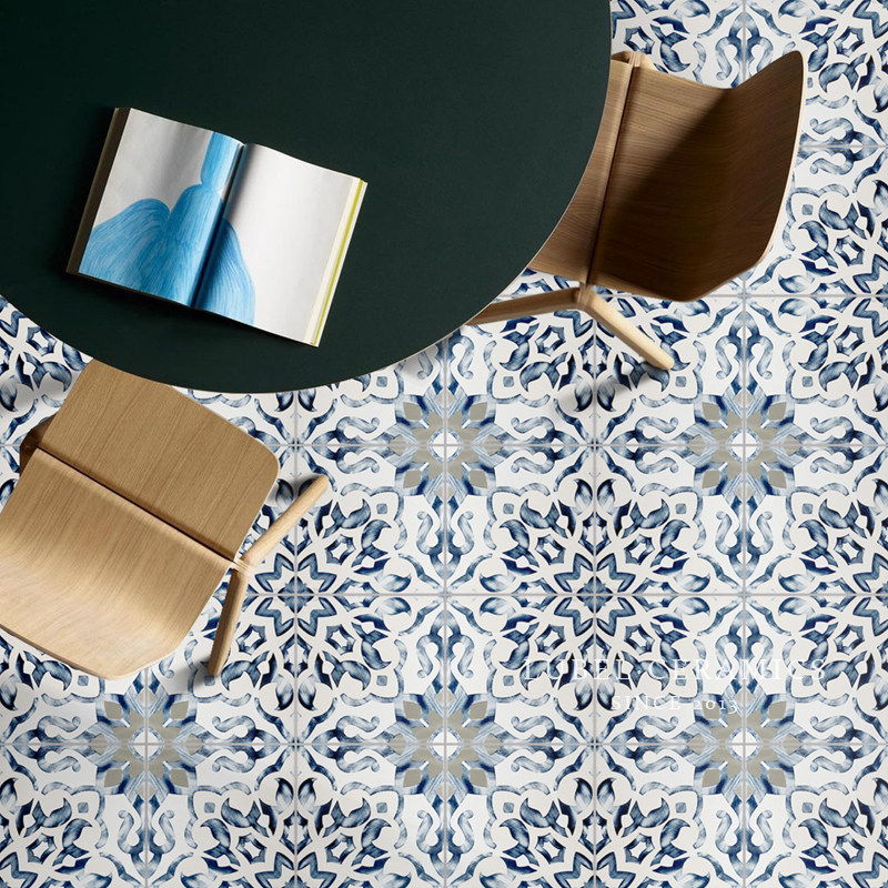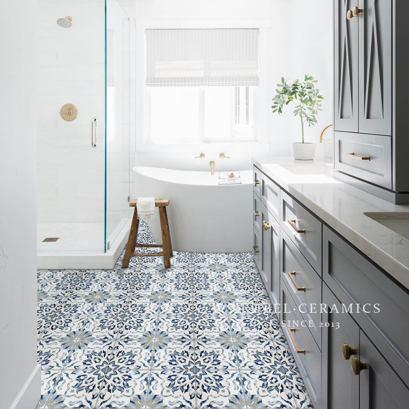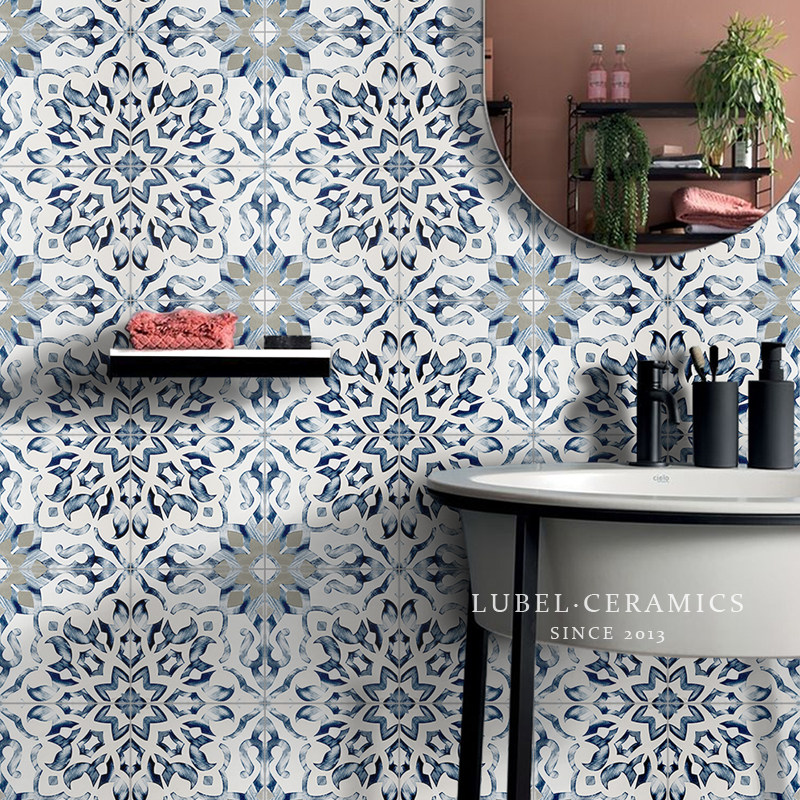 Six Bay Nordic Blue Mediterranean Flower Brick Non-slip Floor Tile Makeup Room Bathroom kitchen Balcony Dining Room Wall Brick