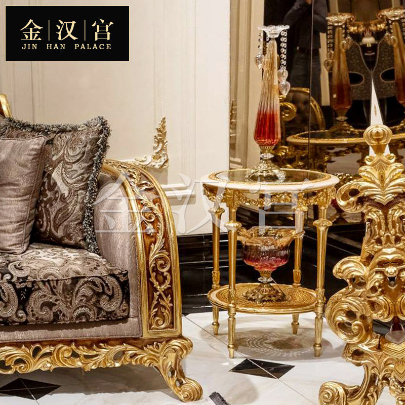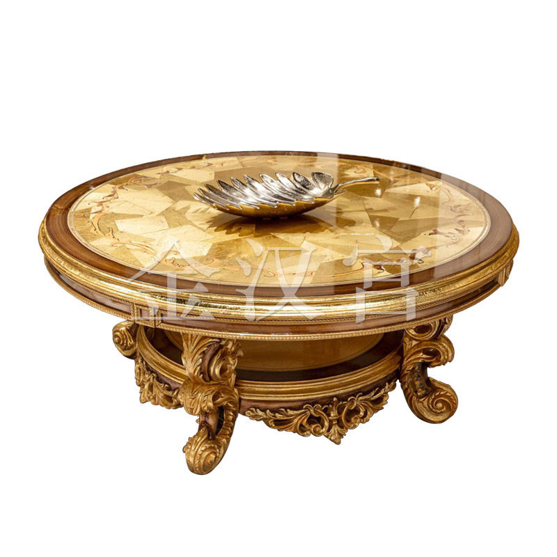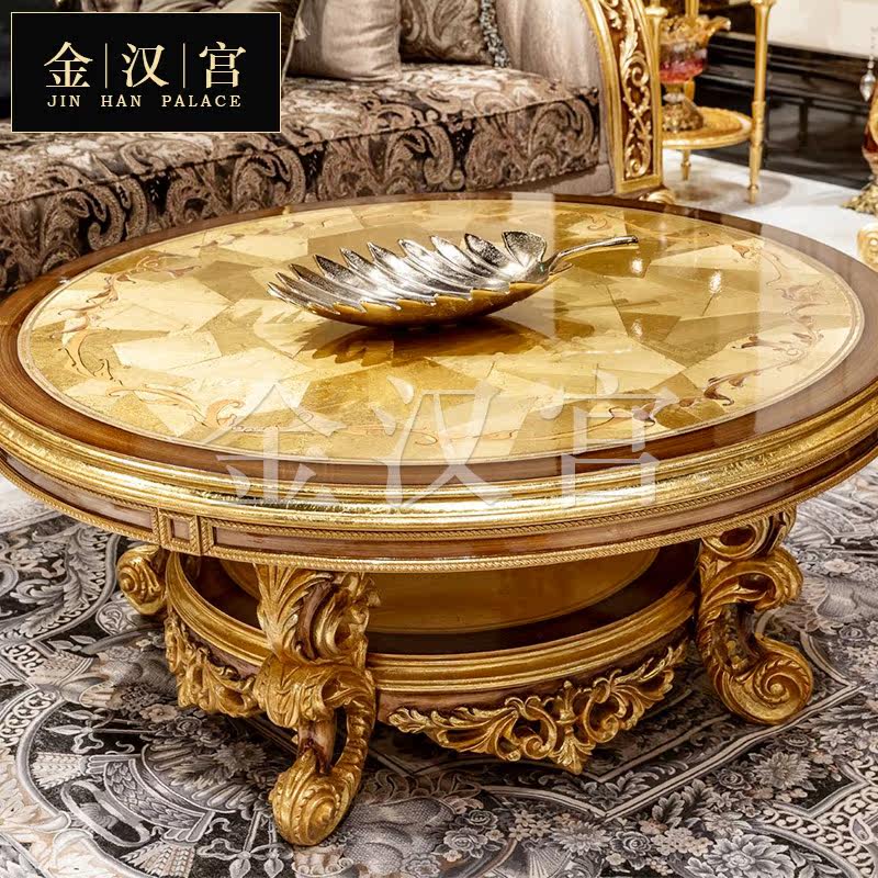 Italian European-style solid wood carved round table large apartment French luxury gold leaf coffee table villa corner table combination furniture