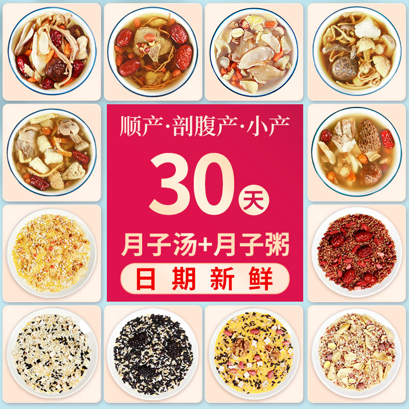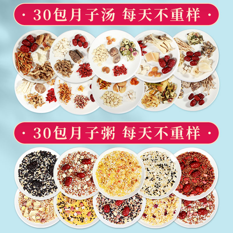 Lunar Submeal 30 days Ingredients Sat moon Supplements Stew Broth stock Nourishing Porridge Postpartum Postpartum Small Moon Caesarean Delivery Box-Taobao