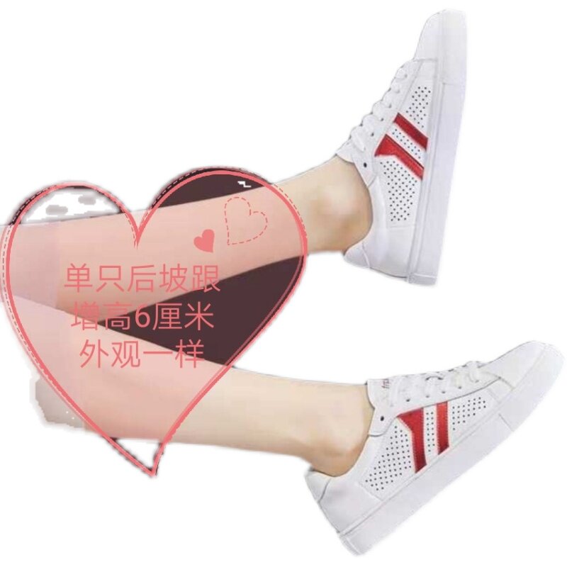 Summer new white shoes casual leather women's shoes custom long and short legs high and low feet invisible heightening correction shoes
