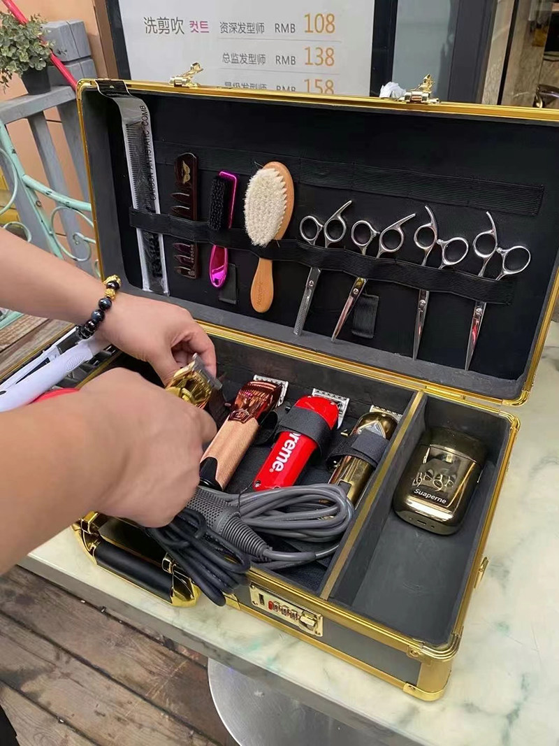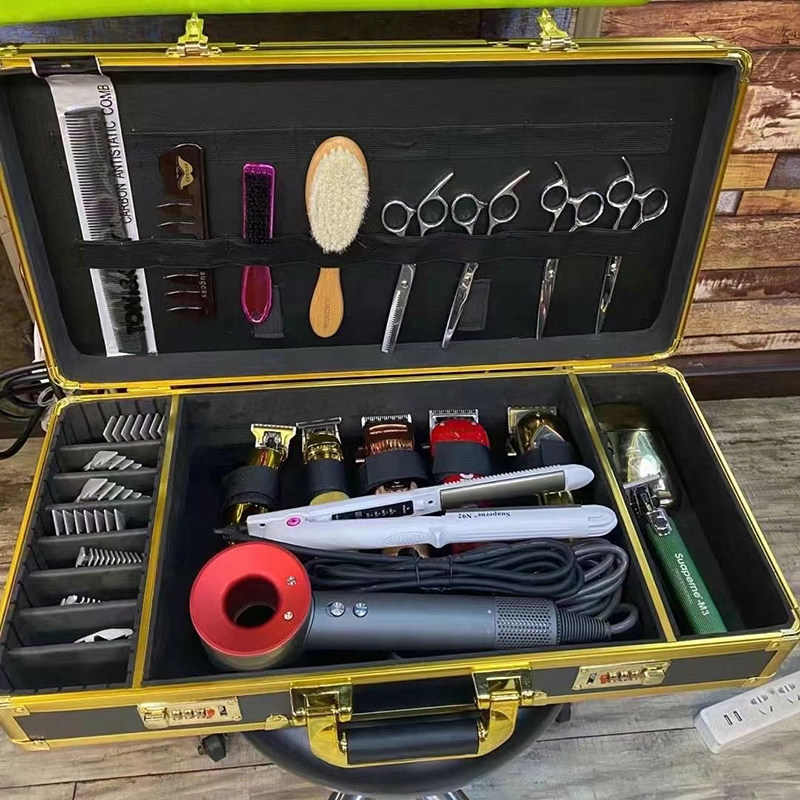 Beauty Hair Kit Wave Shop Hairdresser Hairdresser Hairstylist Special Large Capacity Toolbox Containing Box Coded Lock Suitcases
