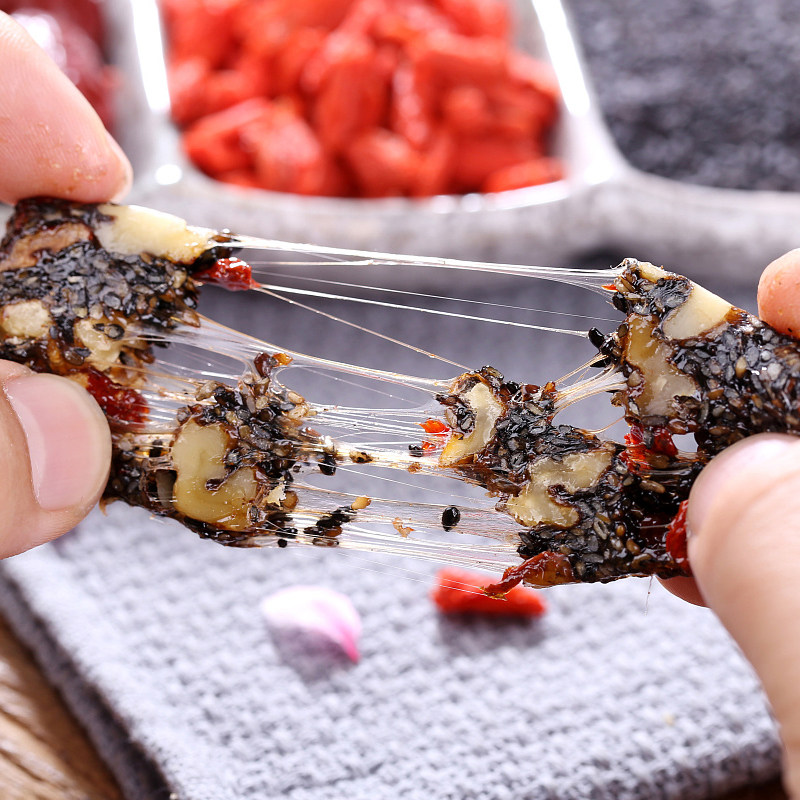 Black sesame, walnut, donkey-hide gelatin, yellow gelatin, rice wine, red dates, wolfberry, single crystal rock sugar, maltodextrin