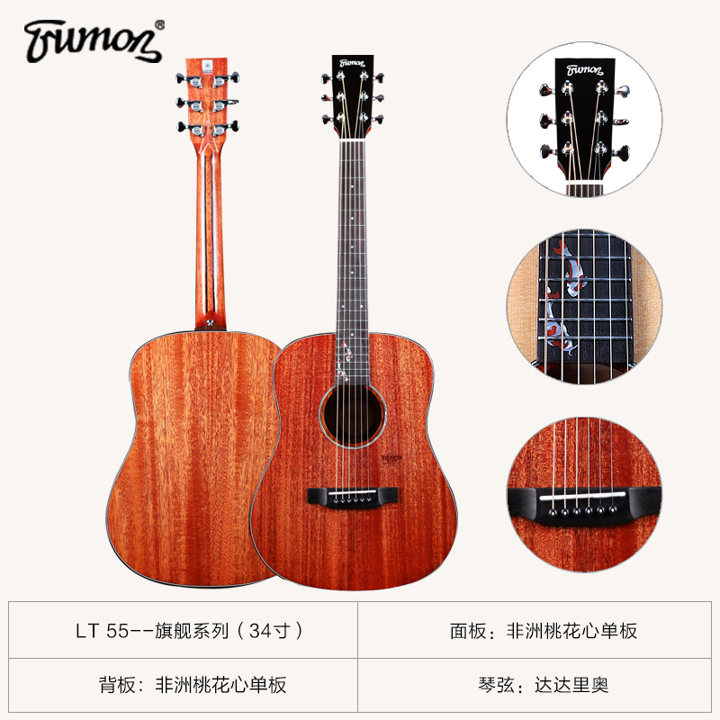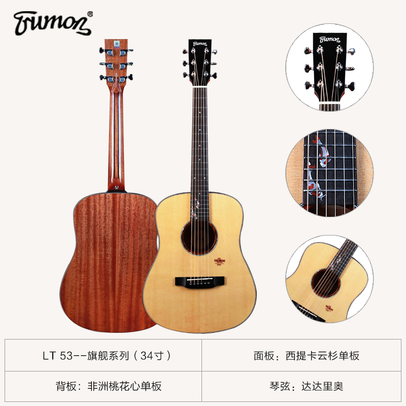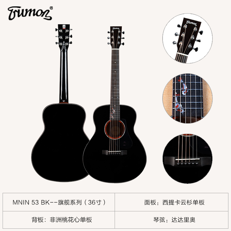 Truman guitar koi MINI53 55 face back single folk guitar 34 36 inch beginner men's and women's professional guitar