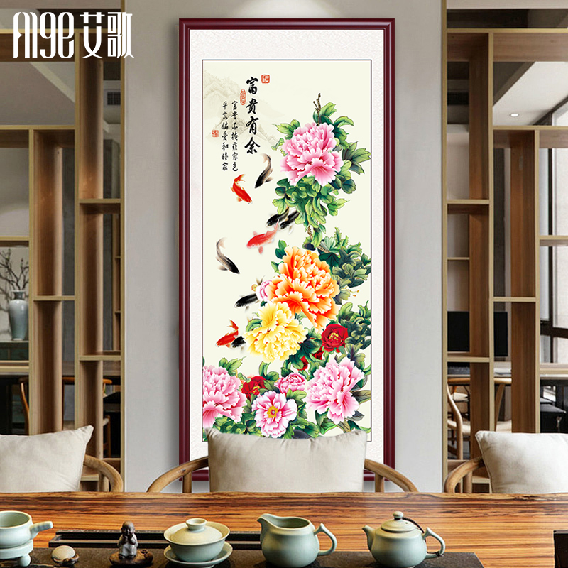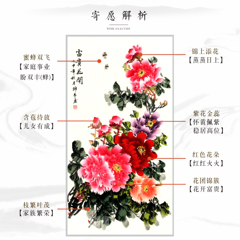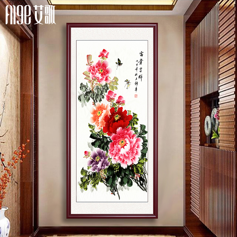 Peony Picture Hanging Painting Flowers Blooming Wealthy Zhongtang Painting Living Room Chinese Painting Entrance Decoration Painting Vertical Version Chinese Flower and Bird Picture Mural