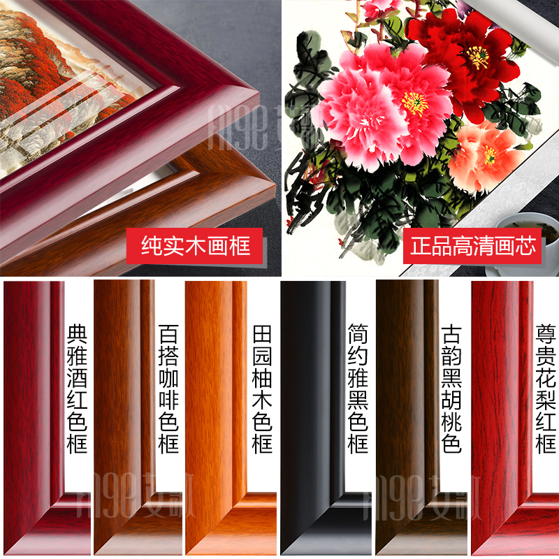 Wine red pure solid wood frame, high-definition rice paper painting core, moisture-proof backboard, hand-mounted (recommended) if you need other color frames, please select this note (wine red is not specified)